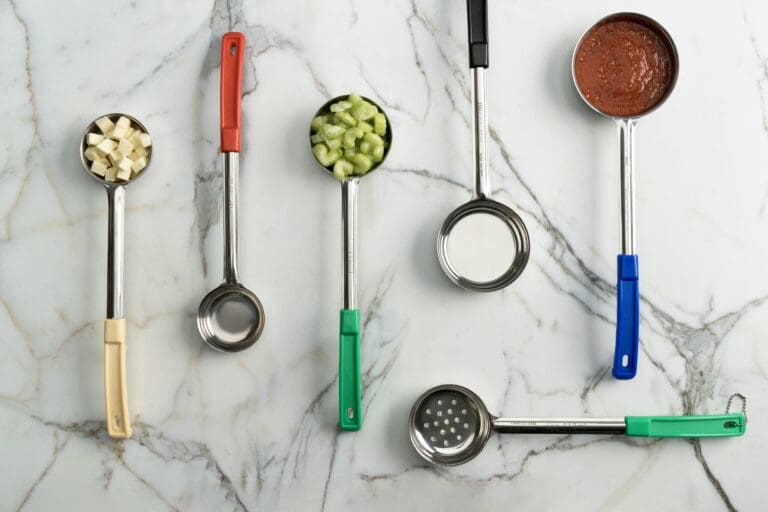 Les outils de dosage, comme les cuillères, les cuillères à portion, les balances et les contenants de préparation, permettent d’assurer une constance en tout temps. Ce n’est pas seulement une question de marges; il s’agit de préserver l’intégrité de chaque plat.